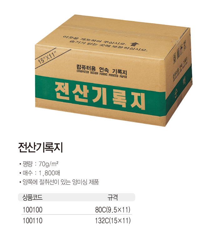 * 전산기록지 80C * 규격 : 80C(9.5 x 11)