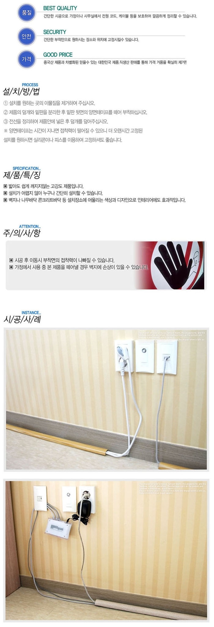 ●전선몰드(나무무늬/대/1m/2개입)● PVC재질(나무무늬), 2개입 ■ 품명 및 모델명: 전선몰드(나무무늬/대/1m/2개입) ■ 법에 의한 인증, 허가 등을 받았음을 확인할 수 있는 경우 그에 대한 사항: 해당없음 ■ 제조국 또는 원산지: 대한민국 ■ 수입여부: 해당없음 ■ 안전인증여부: N