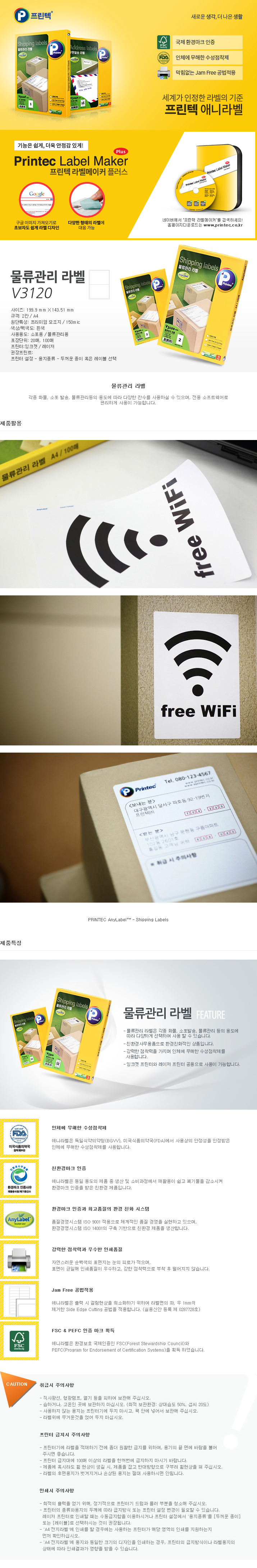 ■ 품명 및 모델명: 물류관리용라벨(V3120/100매/2칸/프린텍)