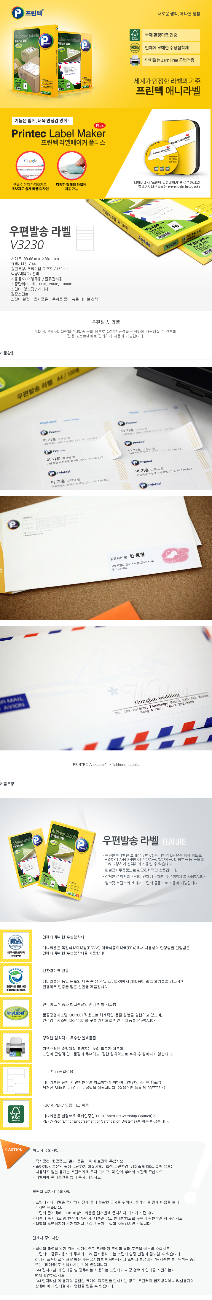■ 품명 및 모델명: 우편발송용라벨(V3230/100매/14칸/프린텍)