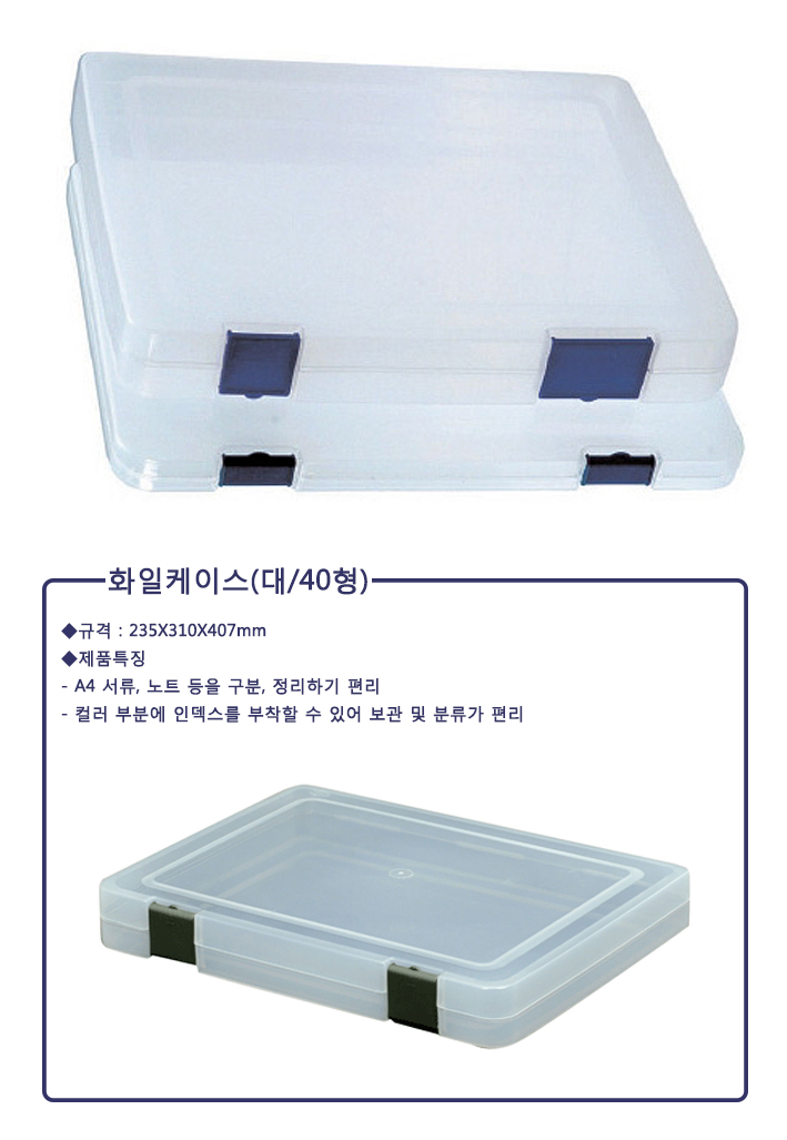 ◎ 상품 상세설명- 규격 : A4- 규격 : 대(235*310*40mm)- A4 서류, 노트 등을 구분, 정리하기 편하며 인덱스를 부착할 수 있어 보관, 분류가 간편함◎ 상품정보고시■ 법에 의한 인증 사항 - 해당없음■ 제조국 또는 원산지 - 대한민국■ 수입여부 - 해당없음■ 안전인증여부 - N