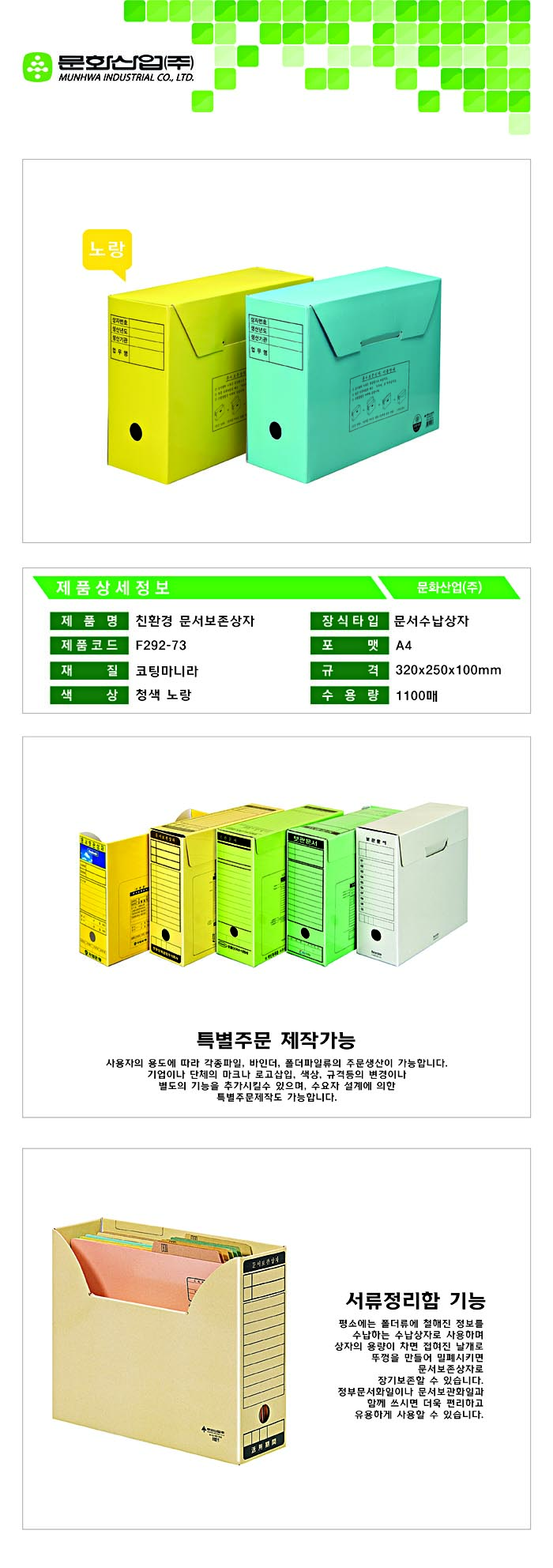 ■ 품명 및 모델명: 친환경 문서보존상자(노랑/F292-73/문화산업)