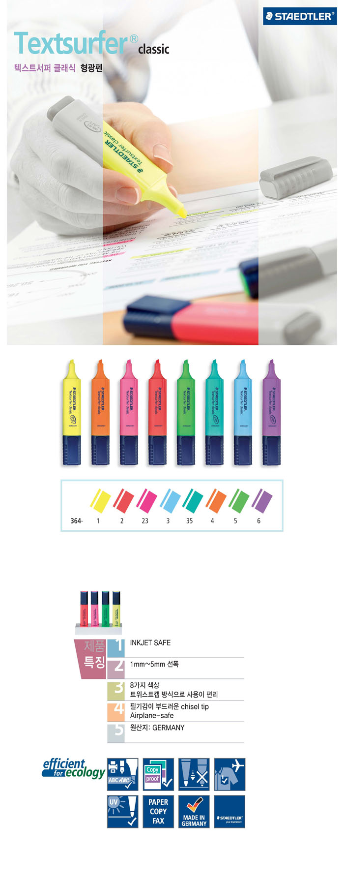 ■ 품명 및 모델명: 형광펜(노랑/364-1/1자루/STAEDTLER)