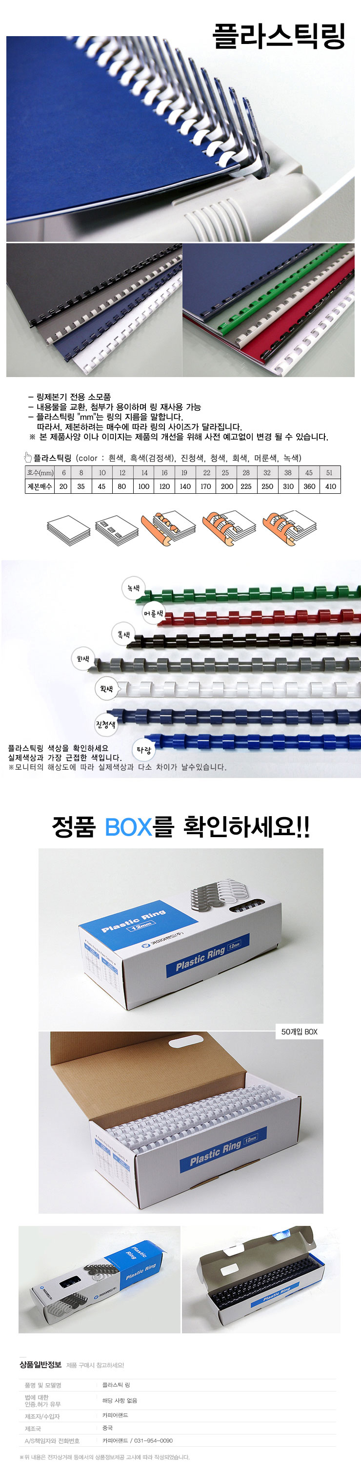 * 제품특징 - 가장 널리사용되는 플라스틱링 - 저렴한 가격, 경제적인 소모품 - 다양한 색상 - 탁월한 탄력성 - 규격 : A4