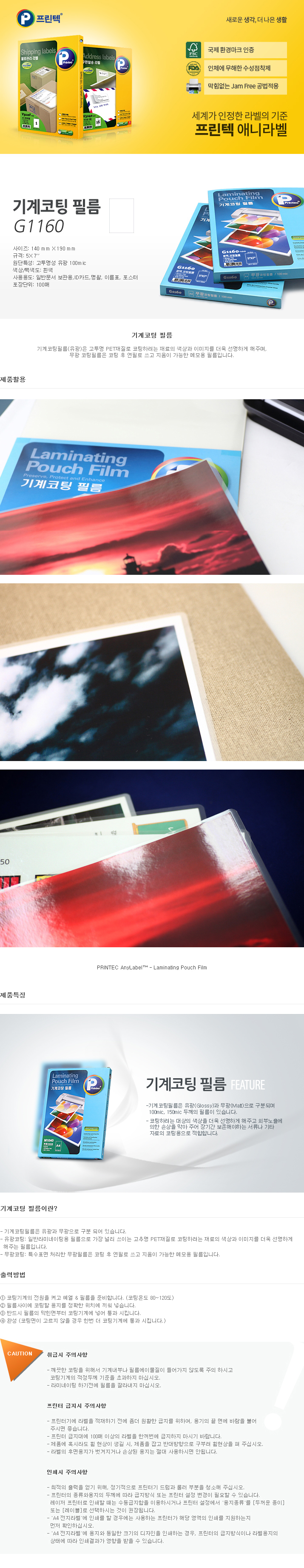 코팅필름(G1160/140*190/100mic/프린텍)/권