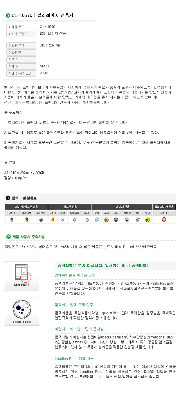 ■ 품명 및 모델명: 컬러레이저용지A4(100g/200매/CL-10570/폼텍)