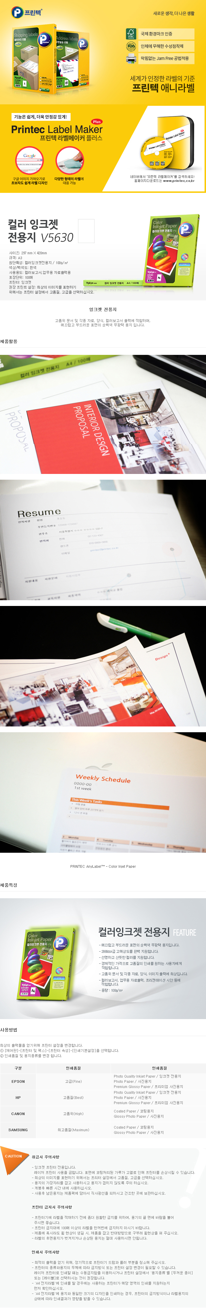 ■ 품명 및 모델명: 컬러잉크젯용지(V5630/A3/100매/프린텍)