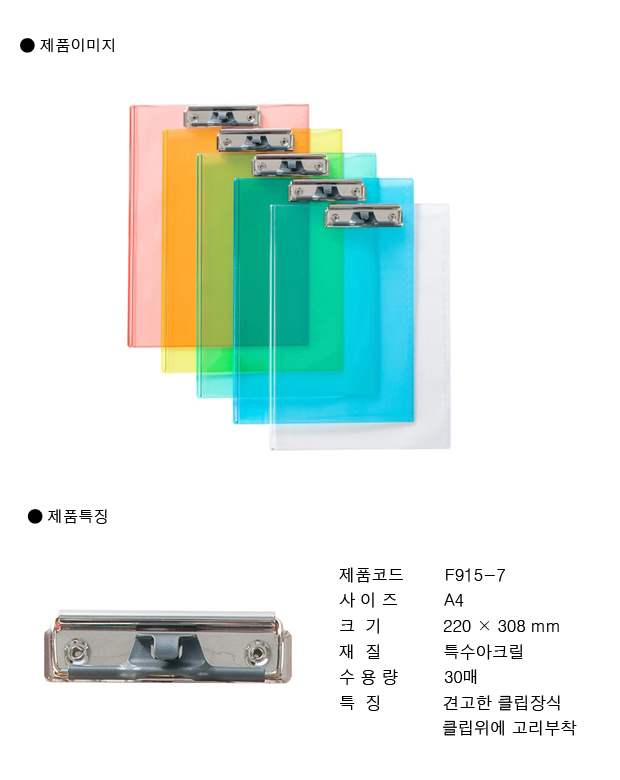 ◎ 상품 상세설명 - 규격 : A4 - 재질 : 특수아크릴 - 색상 : 투명 - 눈금자(30cm)가 부착 - 견고한 클립장식 - 클립 위에 고리 부착 ◎ 상품정보고시 ■ 법에 의한 인증 사항 - 해당없음 ■ 제조국 또는 원산지 - 대한민국 ■ 수입여부 - 해당없음 ■ 안전인증여부 - N
