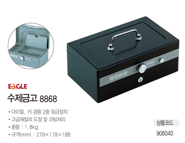 ■ 품명 및 모델명: 수제금고(8868/이글코리아) ■ 법에 의한 인증, 허가 등을 받았음을 확인할 수 있는 경우 그에 대한 사항: 해당없음 ■ 제조국 또는 원산지: 한국 ■ 수입여부: 해당없음 ■ 안전인증여부: N