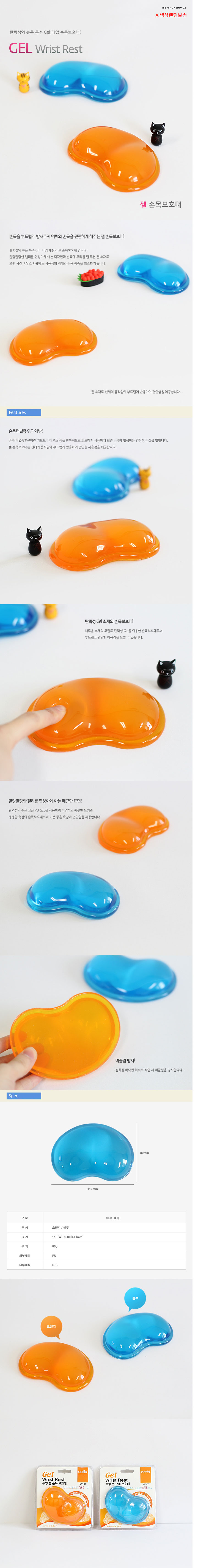 Model No. WP-03손목과 마우스의 수평을 유지하여 손목의 피로감을 극소화인체공학적 디자인과 부드러운 소재점착성 바닥처리로 사용시 미끌림 방지규격(mm) : 135*150*25