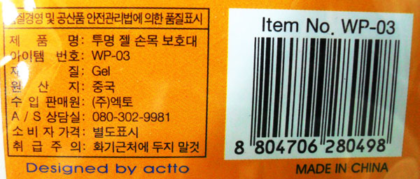 ■ 품명 및 모델명: 투명젤손목보호대(WP-03/엑토)
