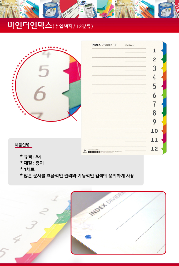 바인더인덱스(수입색지/12분류/A393-7/문화산업)/개