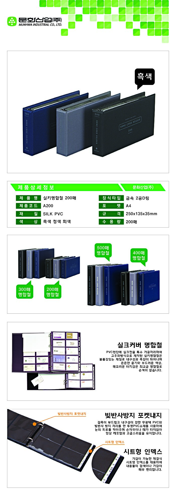 ■ 품명 및 모델명: 실키명함철(200장/A200/흑색/문화산업)