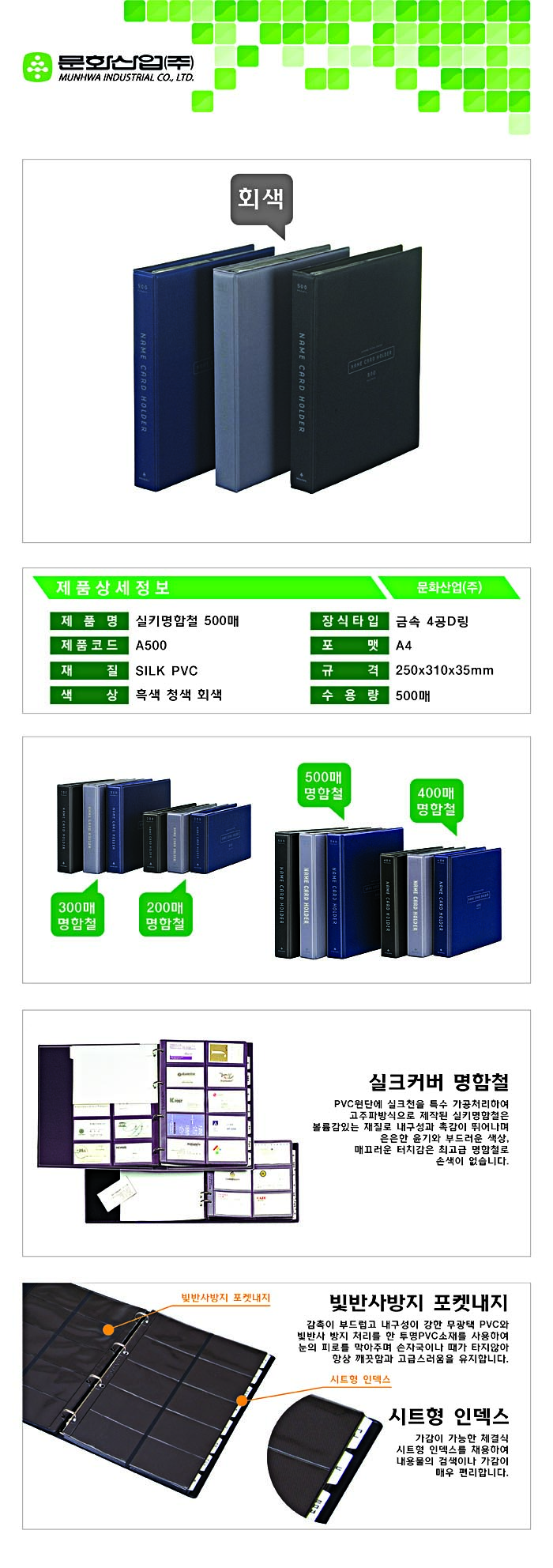 ■ 품명 및 모델명: 실키명함철(500장/A500/회색/문화산업)