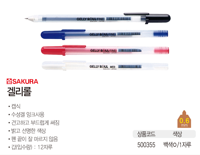 ■ 품명 및 모델명: 겔리롤(백색/0.6/1자루/SAKURA) ■ 법에 의한 인증, 허가 등을 받았음을 확인할 수 있는 경우 그에 대한 사항: 해당없음 ■ 제조국 또는 원산지: 일본 ■ 수입여부: ㈜짐모아 ■ 안전인증여부: N