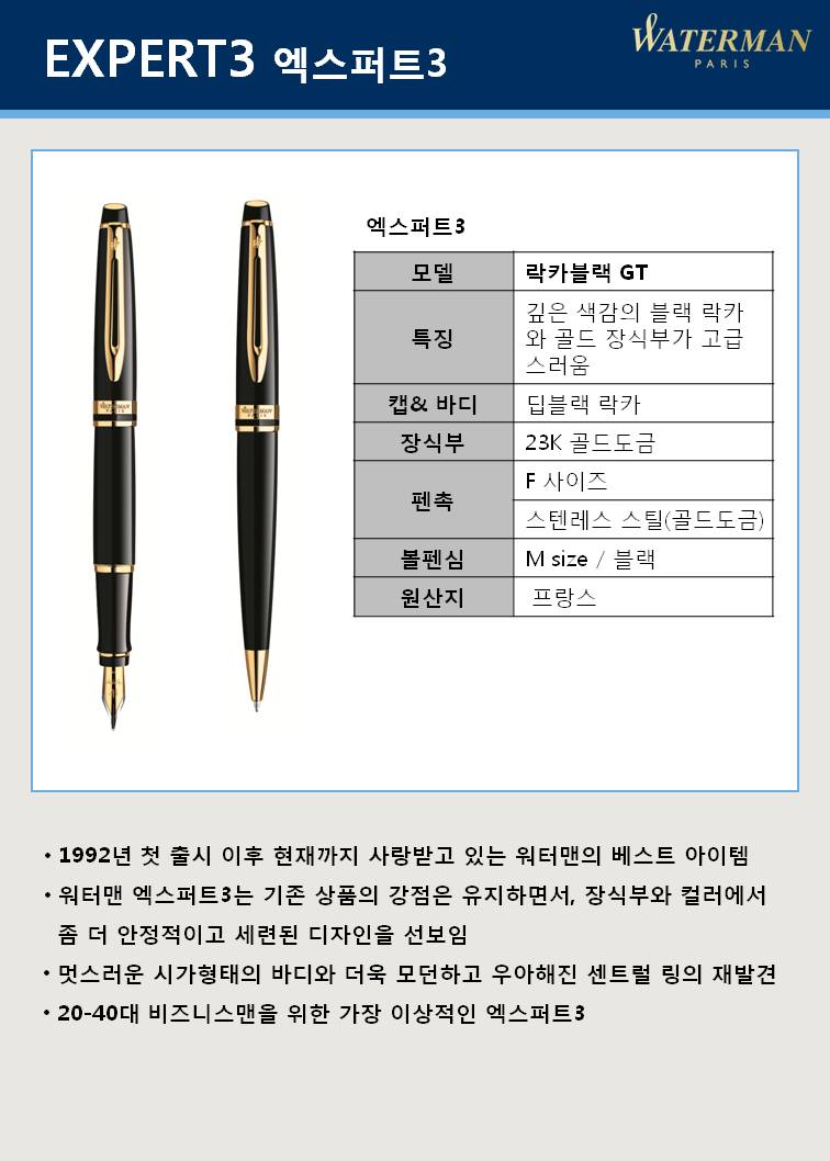 ■ 품명 및 모델명: 엑스퍼트3 만년필(흑/GT/WATERMAN)