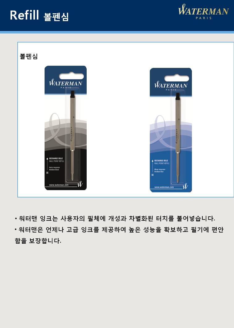 - 단위: 1개■ 품명 및 모델명: 볼펜리필(흑/M/WATERMAN) ■ 법에 의한 인증, 허가 등을 받았음을 확인할 수 있는 경우 그에 대한 사항: 해당없음 ■ 제조국 또는 원산지: 프랑스 ■ 수입여부: ㈜항소 ■ 안전인증여부: N