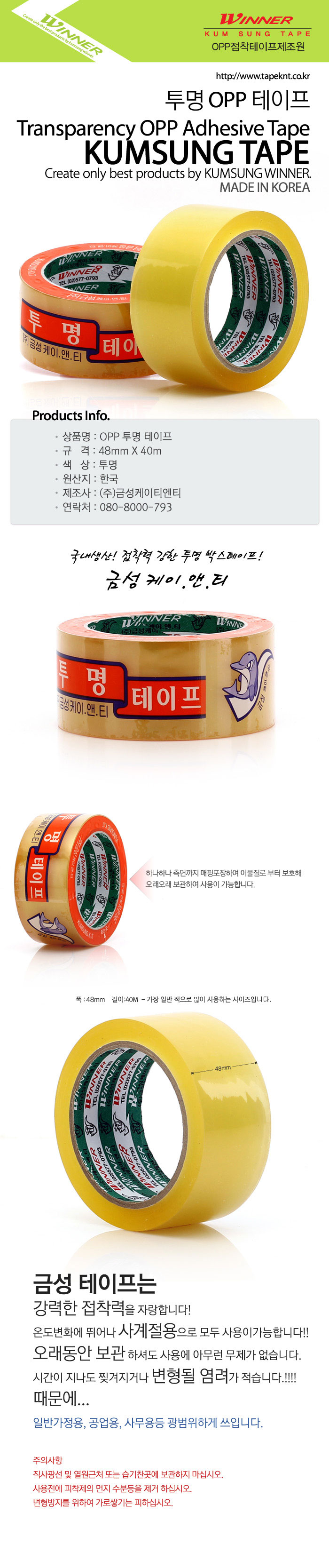 OPP테이프(1개/투명/48mm*40M/러버타입/금성)/개/투명