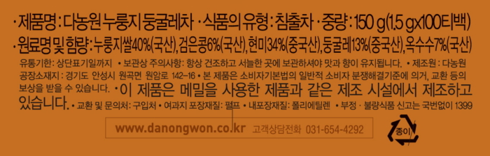 누룽지 둥굴레차(1.5g/100T/다농원)/개