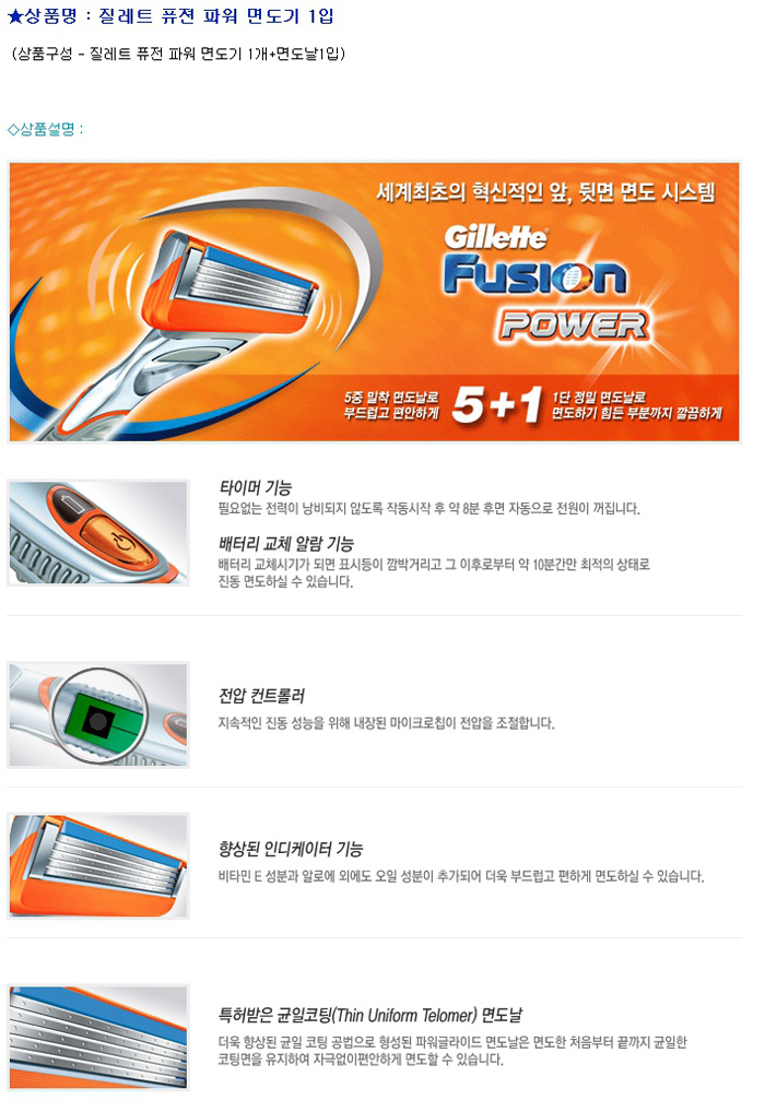 질레트 퓨전파워면도기/개