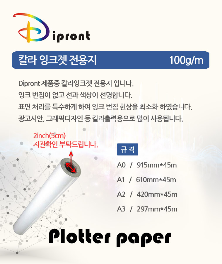 [업체별도배송]컬러잉크젯 플로터롤지(A2/420mm*45M/100g/DIPRONT)/롤