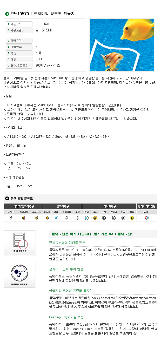 ■ 품명 및 모델명: 컬러잉크젯용지(FP-10570/A4/200매/폼텍)
