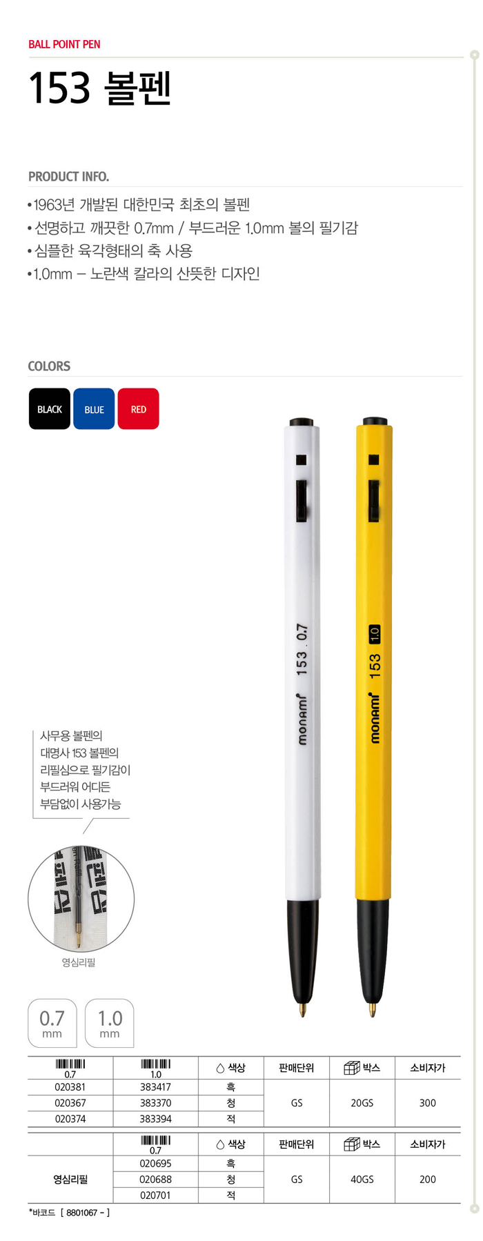 ■ 품명 및 모델명: 153볼펜(적/0.7/12자루/모나미)