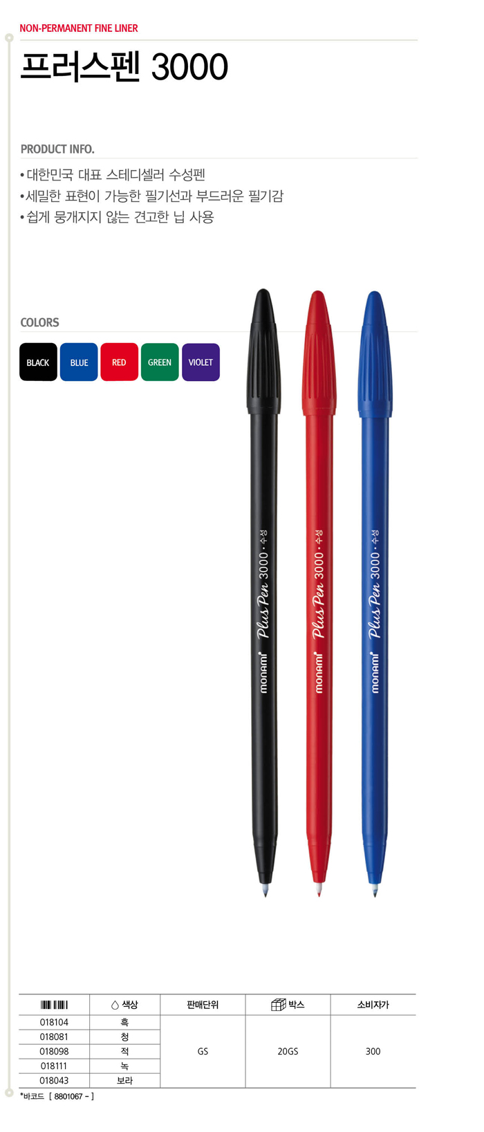 프러스펜 3000(녹/12자루/모나미)/타/녹색