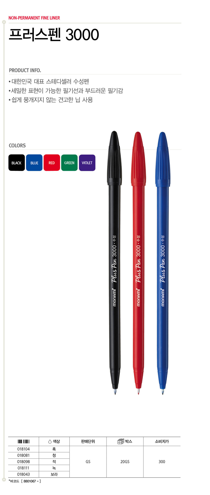 ■ 품명 및 모델명: 플러스펜(청/12자루/모나미)