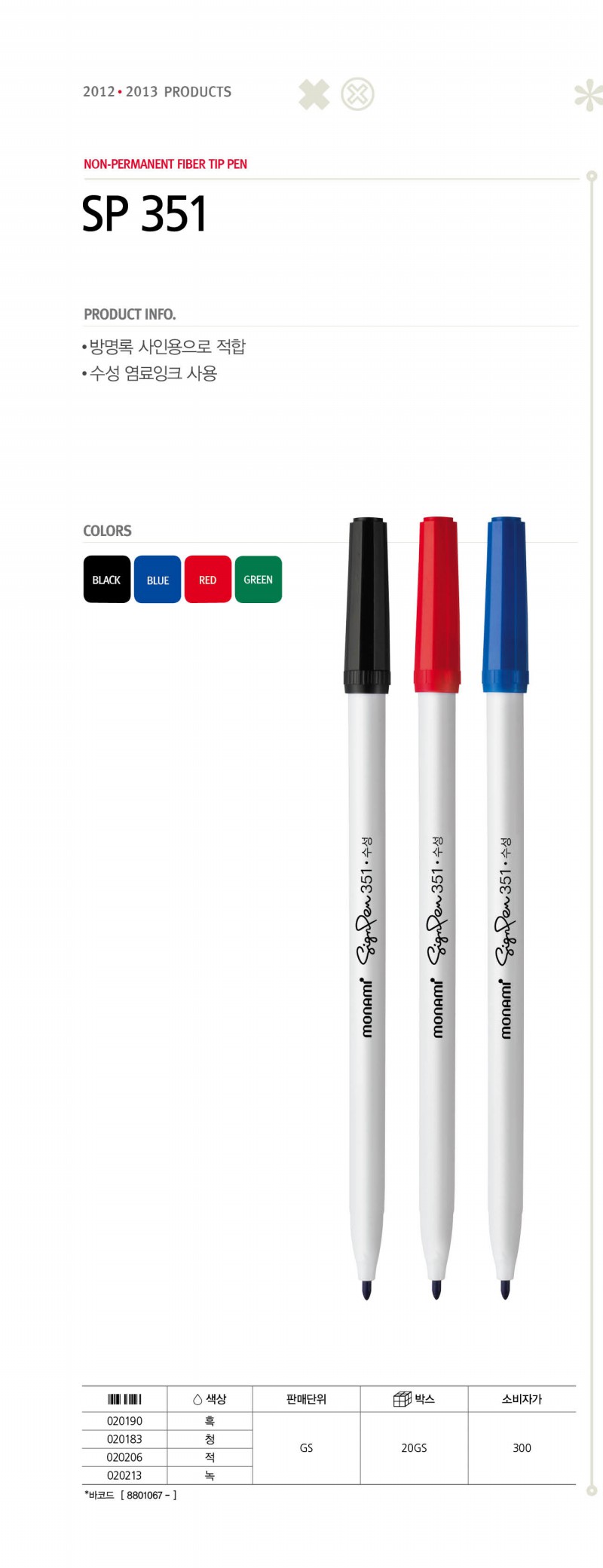 351 싸인펜(모나미/흑/타)/타/흑색