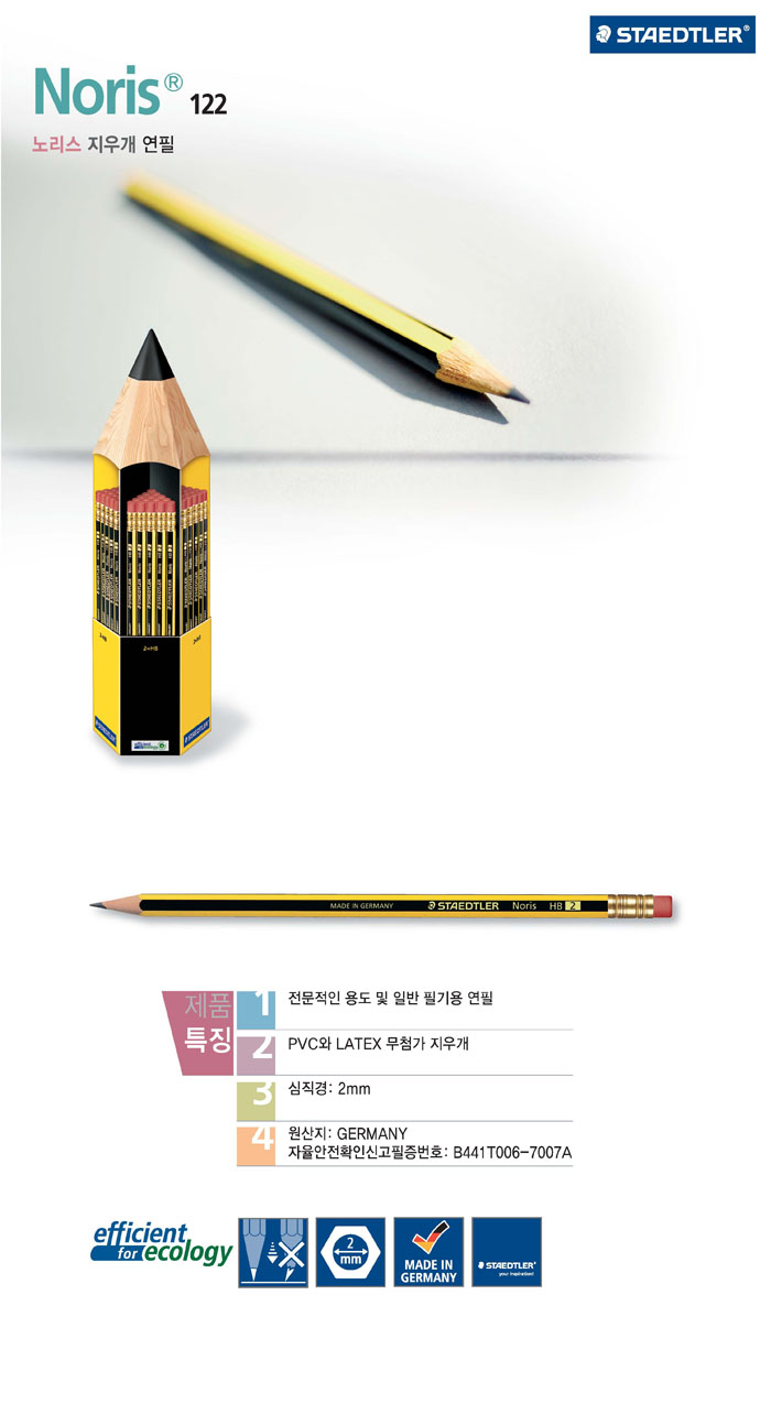 ■ 품명 및 모델명: 지우개연필(122/HB/노/12자루/STAEDTLER)