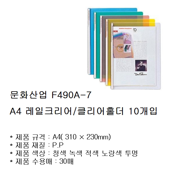 ◎ 상품 상세설명- 규격 : A4(30매 수용)- 좌철- 색상 : 투명- 쫄대를 끼우는 방식으로 내용물의 가감이 용이◎ 상품정보고시■ 법에 의한 인증 사항 - 해당없음■ 제조국 또는 원산지 - 대한민국■ 수입여부 - 해당없음■ 안전인증여부 - N