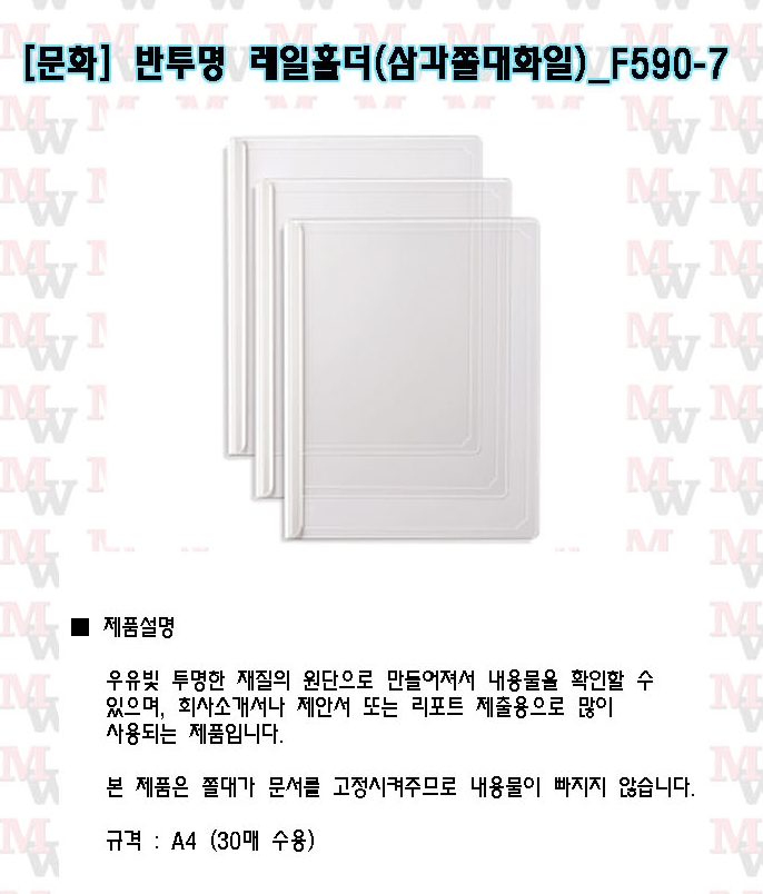 ◎ 상품 상세설명- 규격 : A4(30매 수용)- 좌철- 제안서, 리포트 제출용◎ 상품정보고시■ 법에 의한 인증 사항 - 해당없음■ 제조국 또는 원산지 - 대한민국■ 수입여부 - 해당없음■ 안전인증여부 - N