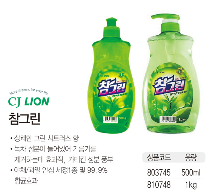 천연 녹차추출물을 함유해 피부건강까지 고려한 참그린은 식물성 고급 원료와 특수처방으로 세정력이 뛰어나며 헹굼성 또한 우수한 고급 주방세제입니다.국내 최초 보건복지부 규격 기준 1종 주방세제로 식기는 물론 야채, 과일에까지 안심하고 사용하실 수 있습니다.