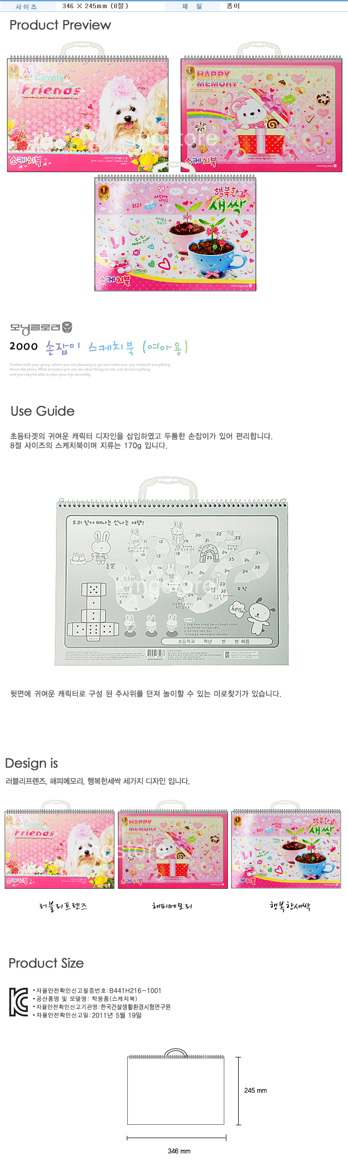 ■ 품명 및 모델명: 손잡이 스케치북(2000/여/모닝)