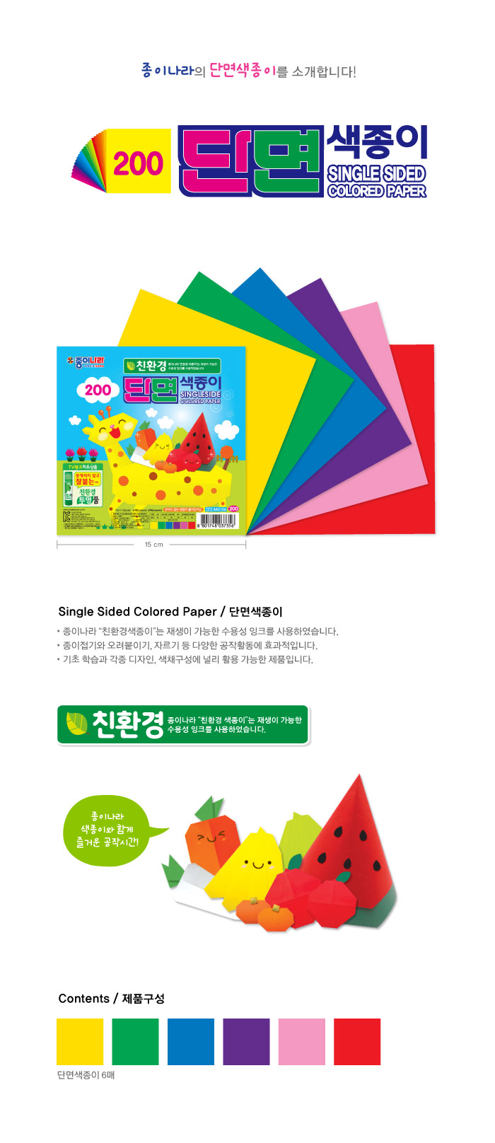 ■ 품명 및 모델명: 단면색종이200(6색/6매/종이나라)