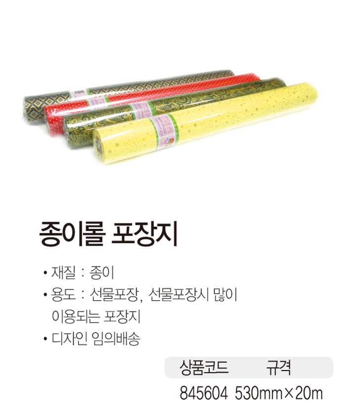 용도 : 선물포장, 선물포장시 많이 이용되는 포장지 ■ 품명 및 모델명 : 종이포장지롤 ■ 법에 의한 인증, 허가 등을 받았음을 확인할 수 있는 경우 그에 대한 사항: 해당없음 ■ 제조국 또는 원산지: 중국 ■ 수입여부: 수입 ■ 연락처 : ㈜오피스큐 / 1577-0096 ■ 안전인증여부: N