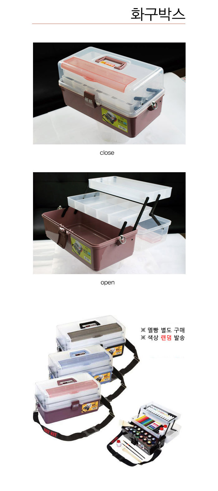- 멜빵이 부착되어 이동이 편리함. (※멜빵 별도 구매) - 칸막이가 이동 조절이 가능토록 설계되어 수납공간을 자유롭게 사용 - 규격(mm) : 430W*226D*210H ■ 품명 및 모델명: 신)화구박스(코리아프라스틱) ■ 법에 의한 인증, 허가 등을 받았음을 확인할 수 있는 경우 그에 대한 사항: 해당없음 ■ 제조국 또는 원산지: 대한민국 ■ 수입여부: 해당없음 ■ 안전인증여부: N