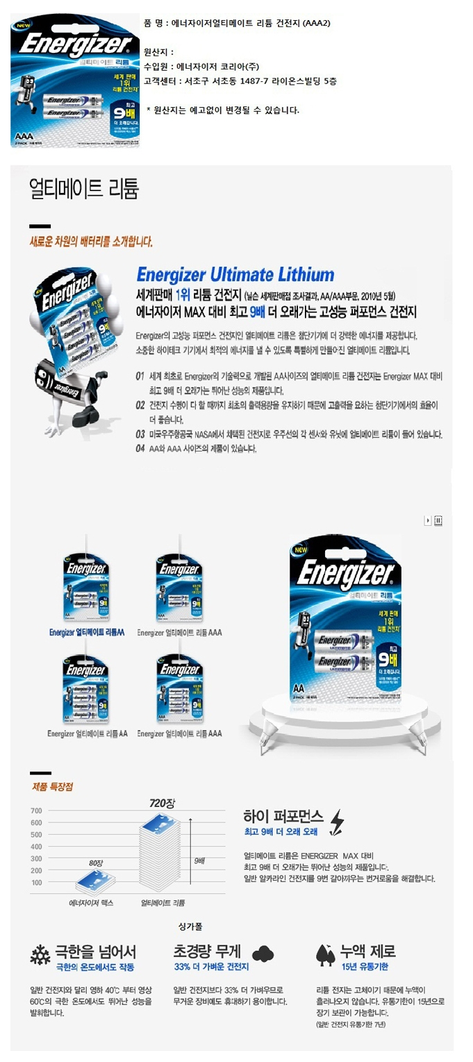 얼티메이트 리튬 건전지(AAA2/에너자이저)/개