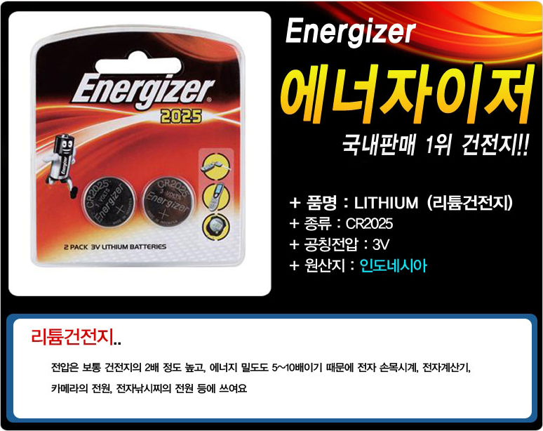 에너자이저 리튬 코인 건전지(CR2025/2입)/개