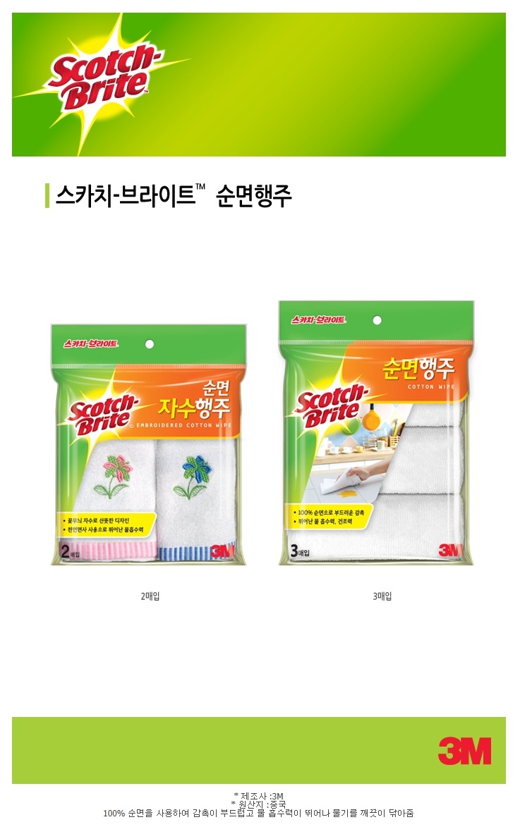 * 제조사 :3M * 원산지 :중국 100% 순면을 사용하여 감촉이 부드럽고 물 흡수력이 뛰어나 물기를 깨끗이 닦아줌