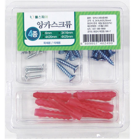 ■ 품명 및 모델명 : 앙카스크류못4종세트 ■ 법에의한 인증 : 해당없음 ■ 제조국 or 원산지 : 한국 ■ 수입여부 : 해당없음 ■ 안전인증여부 : 해당없음