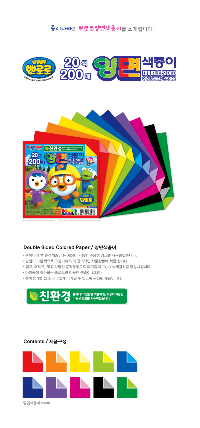 뽀로로양면색종이(20색/200매/종이나라)/개