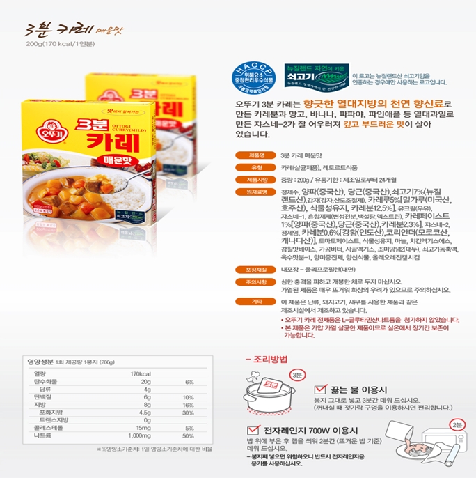 ■ 상품명 - 3분 카레 약간매운맛(200g/오뚜기)