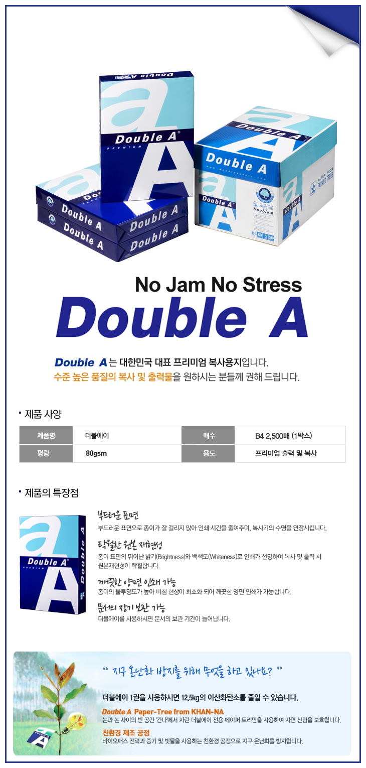 *규격 : B4(257X364mm)*평량 : 80g/㎡*복사기, 잉크·레이저프린터, 일반 용지· 팩시밀리용■ 품명 및 모델명: 복사용지B4(80g/더블에이/500매*5권/박스)■ 법에 의한 인증, 허가 등을 받았음을 확인할 수 있는 경우 그에 대한 사항: ISO9001/ISO14001■ 제조국 또는 원산지: 태국■ 안전인증여부: 해당없음