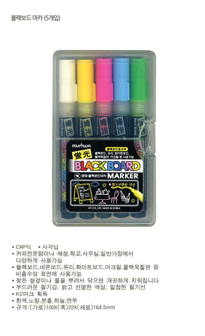 ■ 품명 및 모델명: 블랙보드마카5색세트(사각촉/0.32/백색,노랑,분홍,청색,녹색/문화)