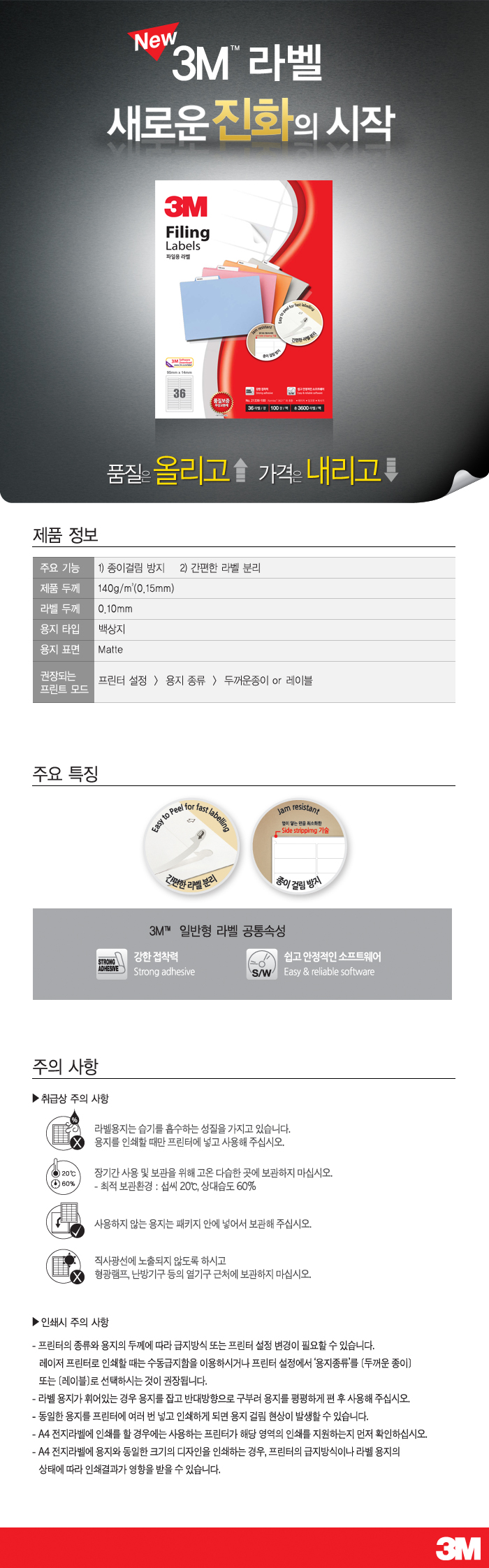 - 3M 고유의 기술을 적용한 간편한 라벨 분리 기능