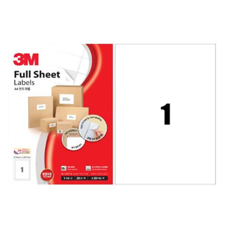 3M 일반형 A4전지 라벨 (21301/1칸/20매)/팩