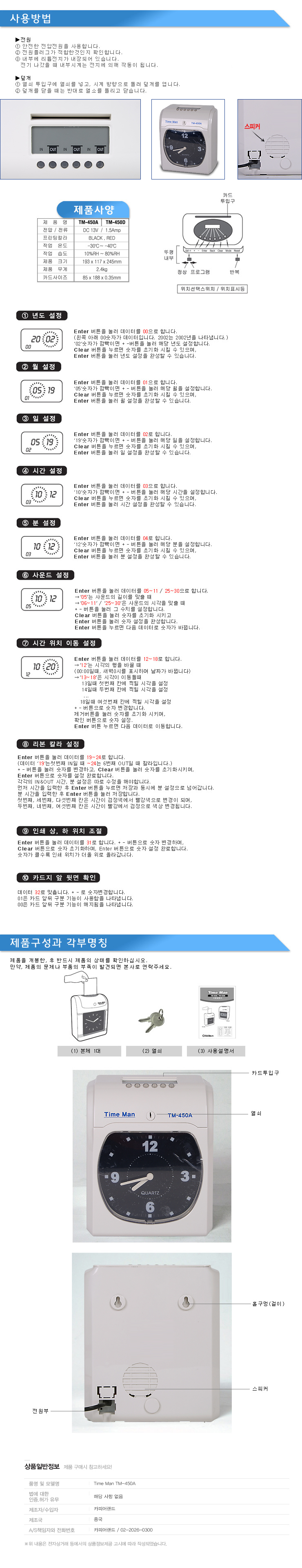 [업체별도배송]출퇴근 기록기(TM-450A/아날로그식)/개