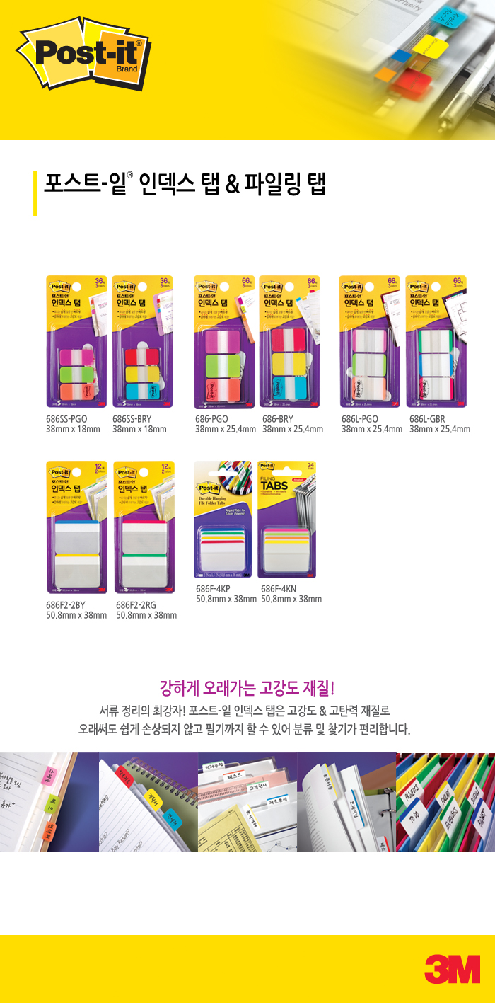 포스트-잇 플래그 인덱스탭 686SS-3PGO (파일,바인더용/3색/3M)/개
